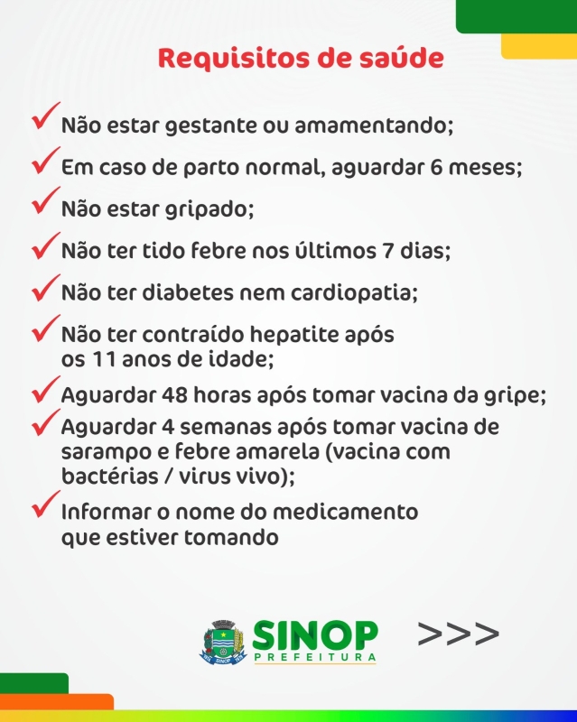 Para doar, é necessário apresentar documento oficial com foto e o CEP do endereço. O doador deve ter entre 16 e 69 anos, pesar acima de 51 kg, estar em boas condições de saúde e ter dormido pelo menos seis horas na noite anterior. Jovens de 16 e 17 anos podem doar mediante autorização assinada pelos responsáveis legais, que devem acompanhar todo o processo.