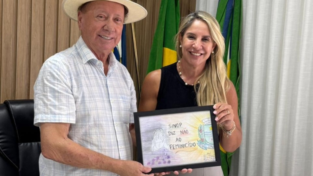 Prefeito de Sinop recebe desenho que marca início de projeto contra a violência à mulher nas escolas municipais