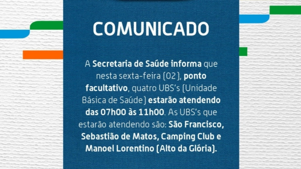 O atendimento será realizado das 7h às 11h, como parte de uma estratégia para ampliar o acesso à saúde e reduzir a demanda nas Unidades de Pronto Atendimento (UPAs) durante o final de semana.