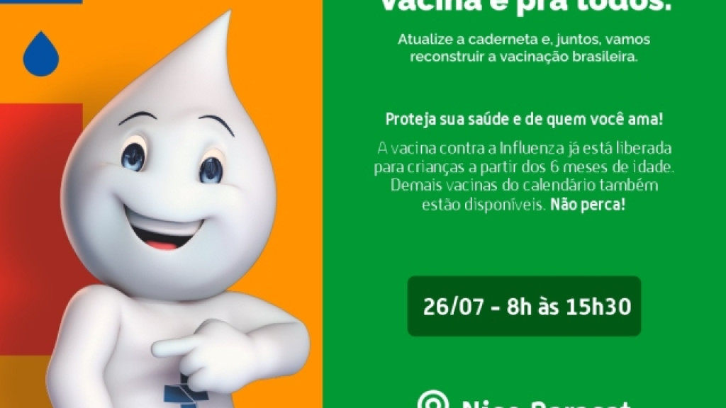 Mutirão especial de vacinação, amanhã, sábado (26), no conjunto habitacional Residencial Nico Baracat, para atender a demanda de atualização do cartão de vacinas de toda população.