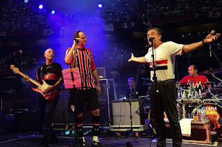 Intervalo de jogo. Rogério Ceni sobe no palco com a banda Ira e pega a