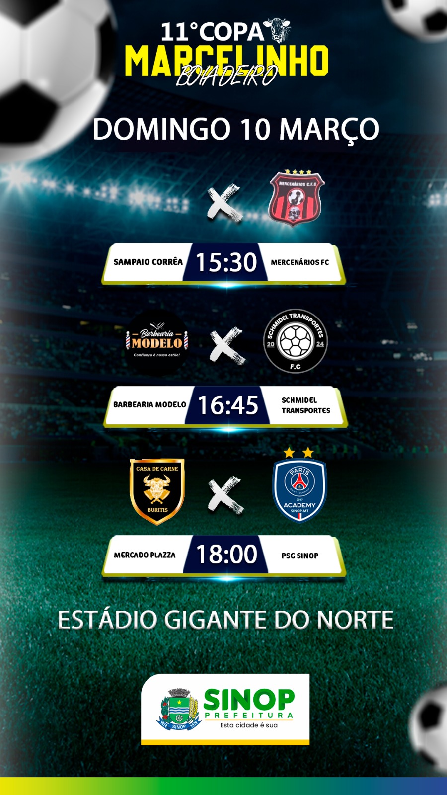 A 11ª edição da Copa Marcelinho Boiadeiro caminha para os últimos jogos da etapa classificatória masculina da competição, que ocorrerão neste domingo (10). Os times Sampaio Corrêa e Mercenários FC abrem o dia com uma disputa emocionante no estádio Gigante do Norte, a partir das 15h30.