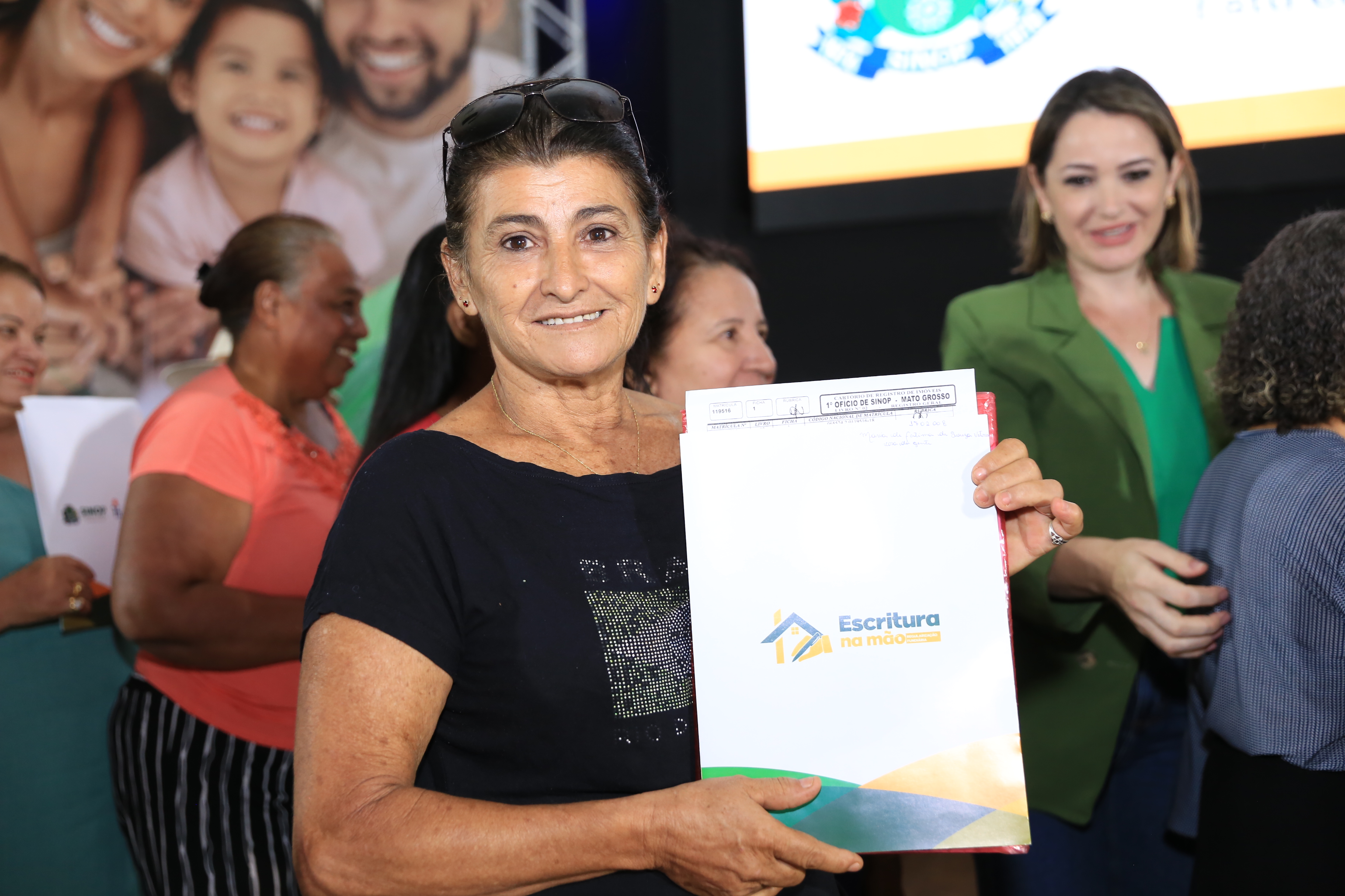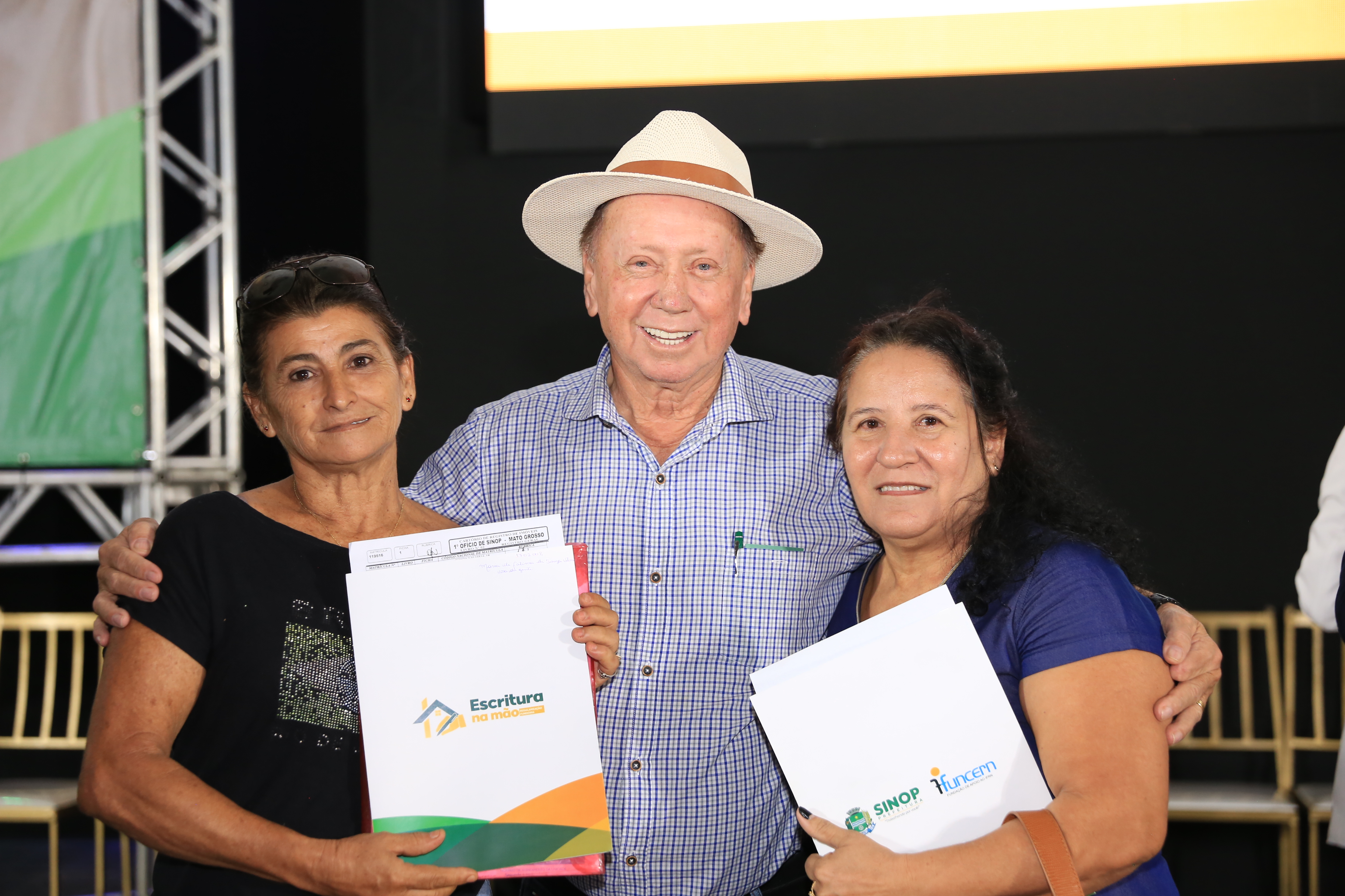 No coração de Sinop, um programa de grande alcance está transformando vidas e comunidades: o "Escritura na Mão". O projeto, que é dedicado à regularização fundiária, busca proporcionar segurança e dignidade para milhares de famílias, e a noite de ontem (05), marcou mais uma emocionante entrega de títulos, contemplando mais de 200 moradores, das Chácaras de Lazer Maria Carolina I e II e do Loteamento Casa da Gente (antigo Parque das Araras II). Esta ação integrou a programação oficial do Festeja Sinop, em comemoração aos 49 anos do município.