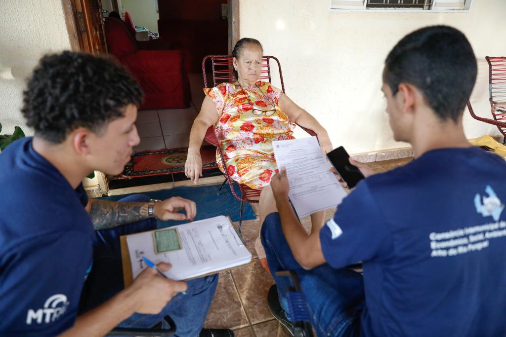 A aposentada Cleuza do Nascimento, de 70 anos, recebeu a equipe em casa para o cadastramento devido à dificuldades de mobilidade - Foto: Marcos Vergueiro/Secom-MT