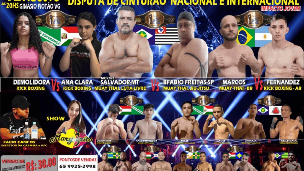 Evento terá disputa por cinturão nacional e internacional, além da participação dos atletas do projeto Impacto Jovem de Rosário Oeste