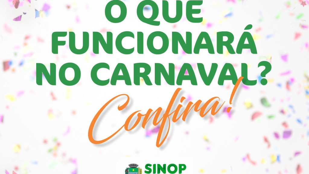 A Prefeitura Municipal de Sinop informa à comunidade que, de acordo com o Decreto Nº 002/2024, os dias 12 e 13 de fevereiro serão pontos facultativos para os órgãos da Administração Pública em virtude do carnaval. O expediente na Quarta-Feira de Cinzas, dia 14, será normal, das 07h às 13h.
